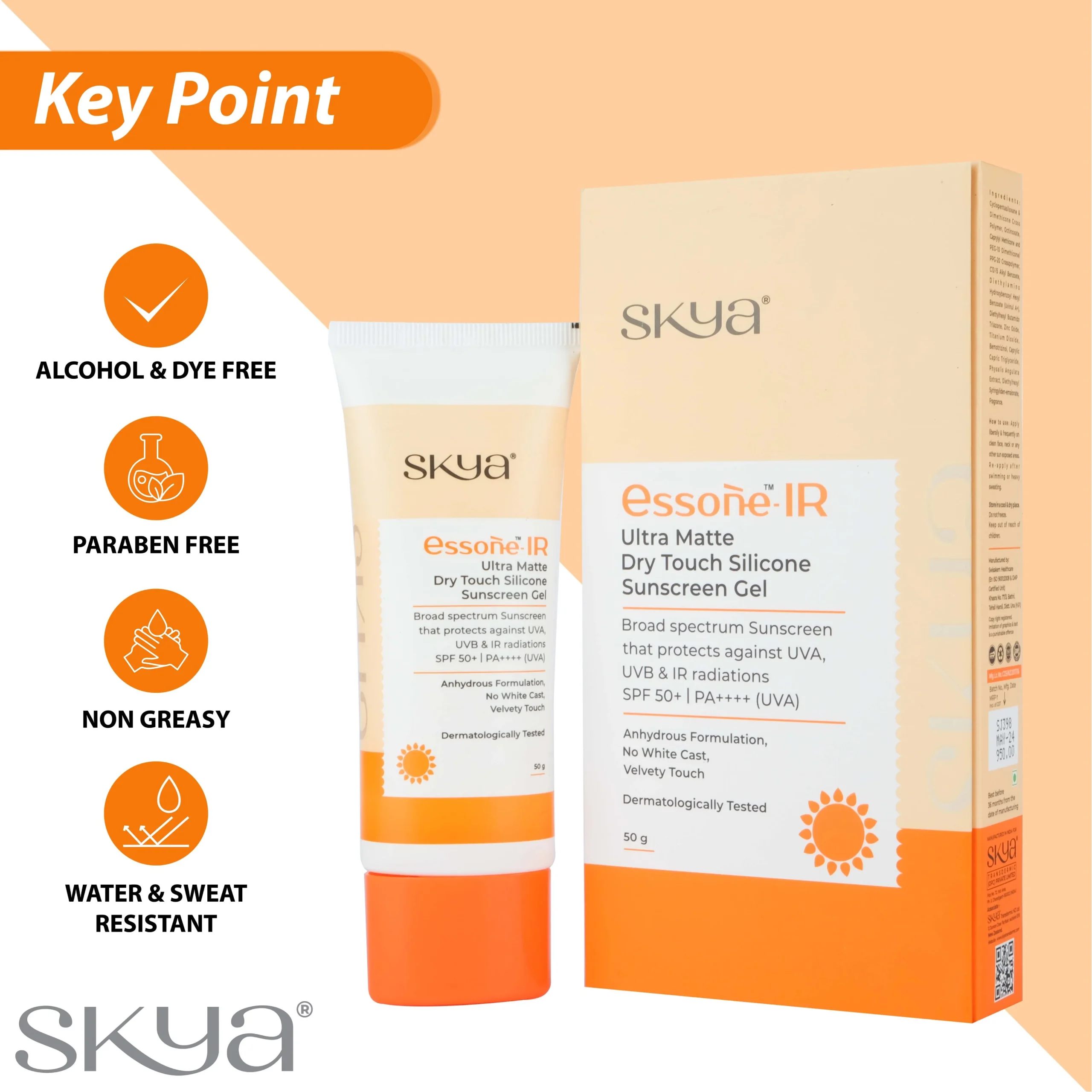 Gelul de protecție solară ESSONE Ultra Matte Dry Touch Silicone Gel este cât se poate de ușor, dar oferă rezultate excelente. Cu o atingere catifelată care nu lasă în urmă o peliculă albă grasă pe piele, acest produs de la SKYA oferă protecție solară cu spectru larg, cu un rating PA+++ – cel mai înalt grad de protecție UVA. Echipat cu SPF 50, care blochează eficient 98% din razele UVB, prevenind astfel deteriorarea solară și alte probleme ale pielii, cum ar fi hiperpigmentarea, tenul tern și erupțiile cutanate. Gelul de protecție solară este, de asemenea, îmbogățit cu filtre minerale, dioxid de titan și oxid de zinc, care oferă protecție de radiații solare.