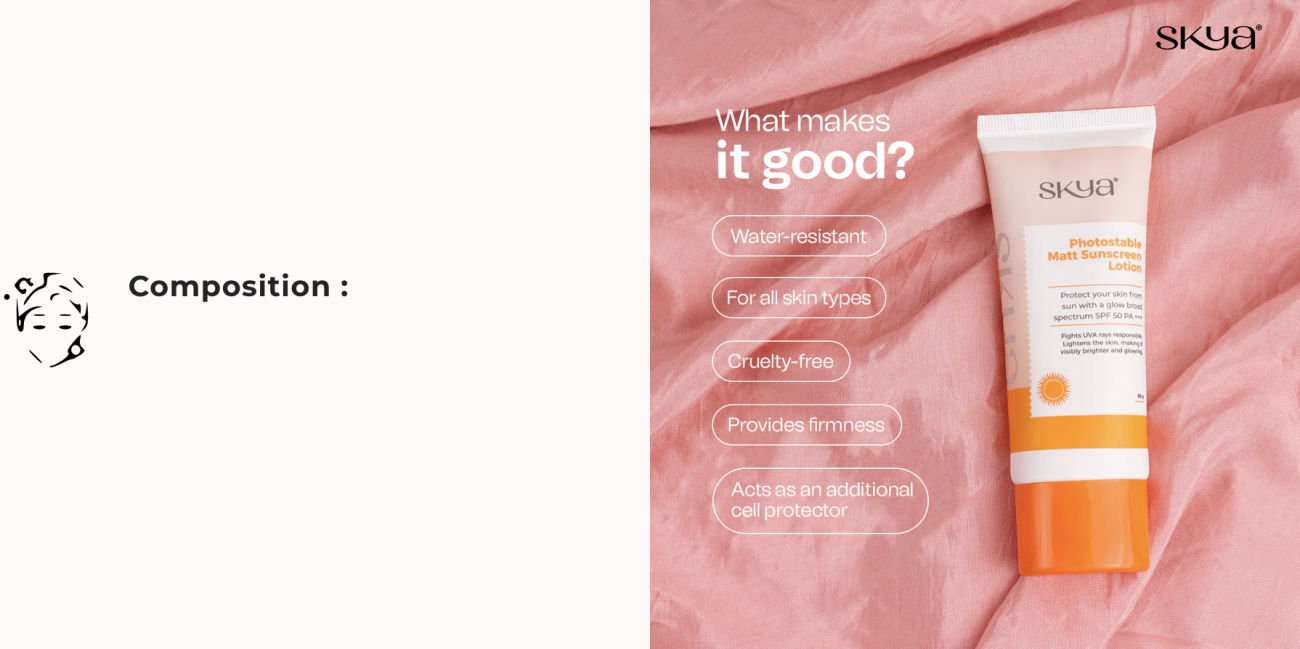Loțiune de protecție solară mată SKYA Photostable cu SPF 50 PA+++ și spectru strălucitor | Protejează împotriva razelor UVA | Non-grasă, Non-comedogenică și cu absorbție rapidă | Cremă de protecție solară pentru femei și bărbați | Cremă de protecție solară ușoară, rezistentă la apă | Îmbunătățește strălucirea și luminează pielea